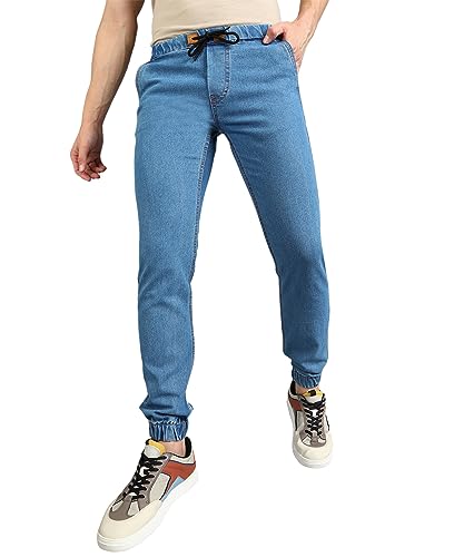 Stylish & Trendy Solid Pattern Light Blue Jogger Jeans – Elasticized Waistband with Drawstring & Elasticized Ankle Rib