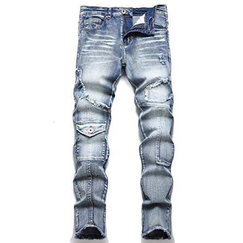 XIMXIMMTIAN Men’s Biker Slim Straight-Leg Jeans