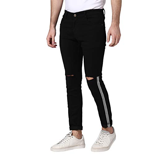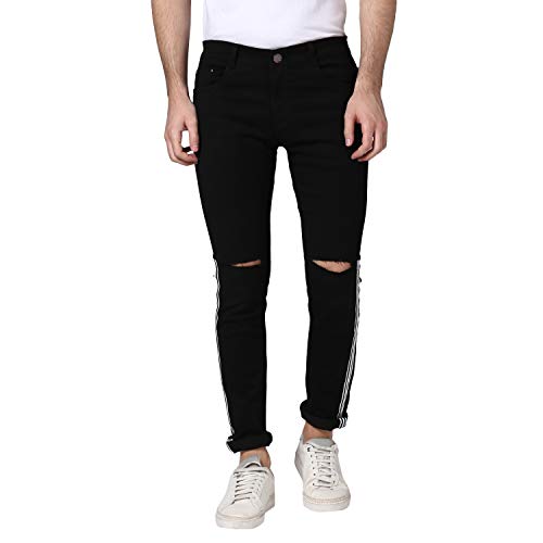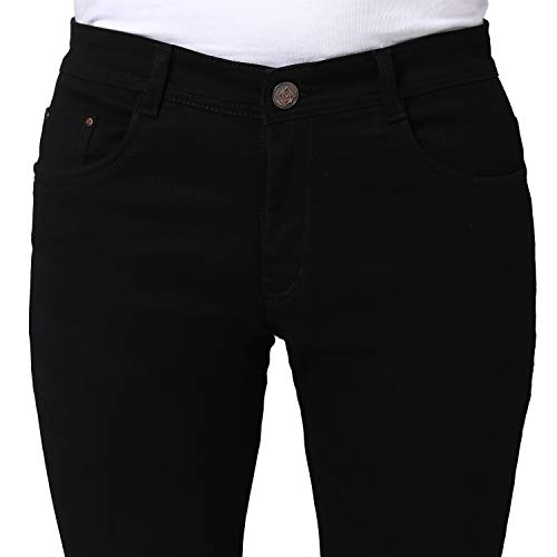 Recreate your fashion sense by wearing these pair of SOLID-BLACK coloured denim jeans from BUKKL. Featuring classic 5 pocket styling that comes together with a perfect slim fit yet Comfort pattern that gives them a sharp look. The cotton spandex fabric of these jeans promises great stretch-ability and comfort all day long. Team them best with a contrast printed t-shirt, sneakers and a jacket.