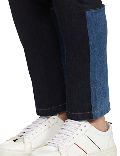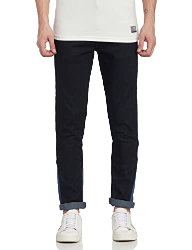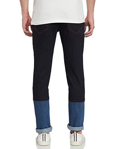 RIVER visions to re-imagine designer wear by bringing you ready to wear fashion from well-known and coveted designers. RIVER by Ashish N Soni Designer Solid Men Denim Trouser With Colour Blocking.(98% Cotton 2% Lycra)