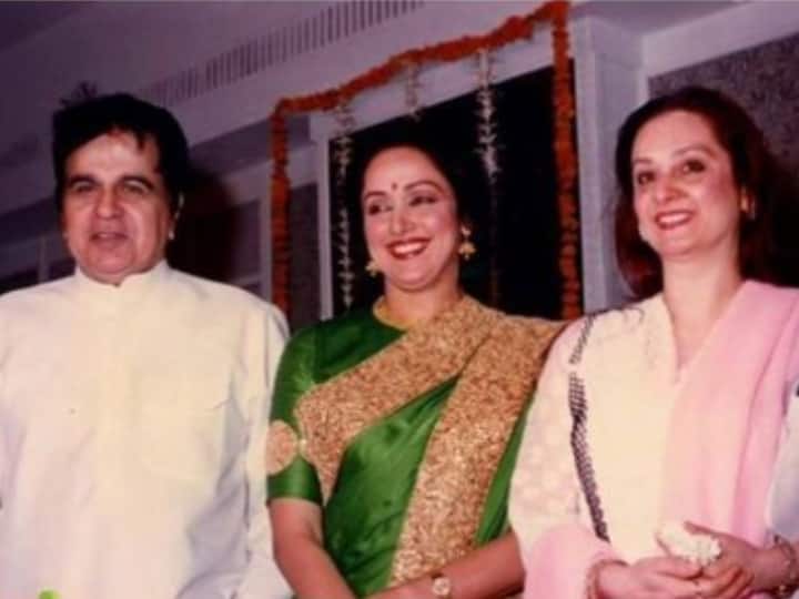 सायरा बानो ने अपने ऑफिशियल इंस्टाग्राम स्टोरी पर एक फोटो पोस्ट की है जिसमें हेमा के साथ वे और दिलीप कुमार कैमरे को पोज दे रहे हैं. हेमा मालिनी तस्वीर में ग्रीन कलर की हैवी इंबॉइडरी वाली साड़ी पहने, कानों में झुमके और माथे पर बिंदी लगाए नजर आ रही हैं. जबकि सायरा हल्के गुलाबी रंग का सूट पहने सिंपल लुक में दिखाई दे रही हैं. तीनों ही कलाकार फोटो में हंसते दिख रहे हैं.