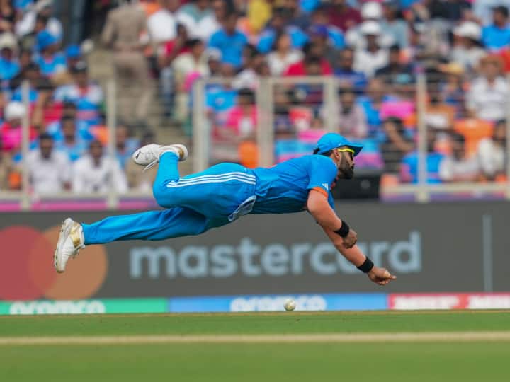 Virat Kohli In Fielding ODI World Cup 2023: वनडे वर्ल्ड कप 2023 में विराट कोहली बैटिंग के साथ फील्डिंग में भी खासा प्रभाव छोड़ रहे हैं. टीम इंडिया विश्व कप में अब तक तीनों ही मुकाबलों में अजेय रही है. इसी बीच टूर्नामेंट के कुल 13 दिनों में विराट कोहली ने फील्ड पर अपनी फील्डिंग से सबसे ज़्यादा प्रभाव छोड़ा है. सभी टीमों के तीन ग्रुप मैचों के बाद आईसीसी की ओर से फील्ड पर सबसे प्रभावी फील्डर्स की एक लिस्ट जारी की गई है, जिसमें कोहली फील्डिंग किंग के रूप में अव्वल नंबर पर दिखाई दिए.