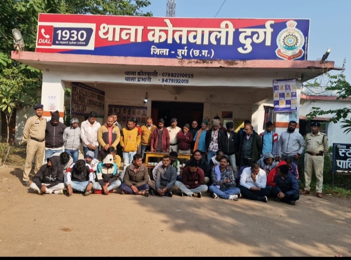 *सभी गिरफ्‌तार आरोपियों के विरुद्ध थाना दुर्ग में अप.क.- 584/2025 धारा 4 छ.ग. जुआं प्रतिषेध अधिनियम 2022 के अन्तर्गत कार्यवाही की गई है।*
