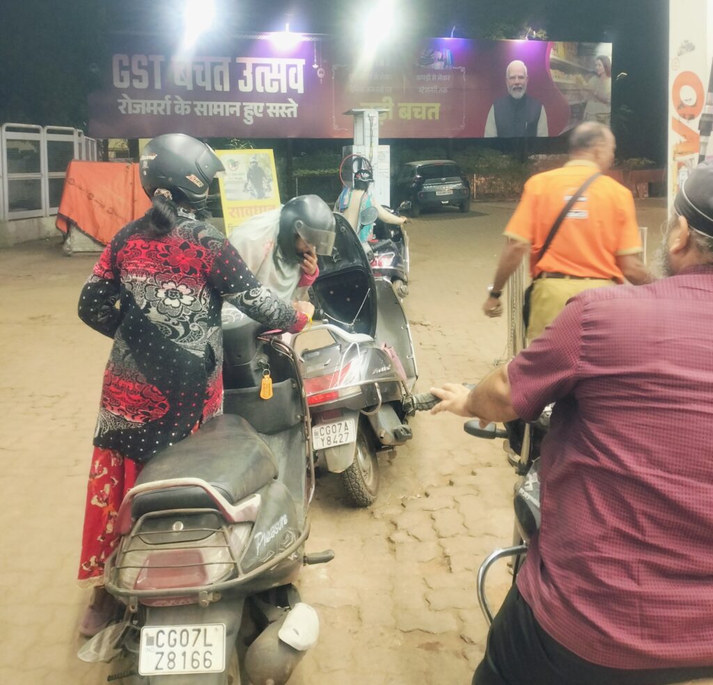 पुलिस वेलफेयर पेट्रोल पंप सेक्टर 6 में एस पी और कलेक्टर के द्वारा निकाले गए आदेश के तहत बिना हेलमेट के पेट्रोल नहीं दिया जाएगा. इस पंप में उक्त आदेश का शत प्रतिशत पालन किया जा रहा है एवं इसमें महिलाओं की भागीदारी अत्यधिक बढ़-चढ़कर दिखालाई दे रही है | अधिकांश महिलाएं हेलमेट पहन कर ही पेट्रोल ले रही है और पुरुष वर्ग भी पेट्रोल भरवाते समय हेलमेट लगा रहे हैं | जो लोग बिना हेलमेट लगाकर पेट्रोल पंप पहुंच रहे हैं उन्हें पुलिस पेट्रोल पंप कर्मियों द्वारा समझाइश दी जा रही है कि बिना हेलमेट पेट्रोल देने में हम असमर्थ हैं | आप हेलमेट लगा कर ही पेट्रोल लें | यह भिलाई का एक नई पेट्रोल पंप है जो एसपी विजय अग्रवाल जी के पदभार संभालने के बाद 24 X 7 कार्य कर रहा है | रात्रि के समय जरूरतमंद कम एवं नशाखोर ज्यादा आते हैं, जैसे पंप कर्मियों की नोकझोंक भी होती रहती है | क्योंकि वह बिना हेलमेट के सड़कों पर फर्राटेदार घूम रहे हैं |