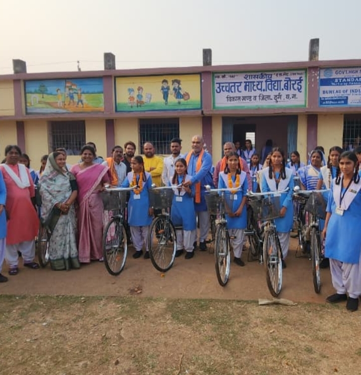 *दुर्ग ग्रामीण विधायक ललित चंद्राकर के हाथों बोरई 44 छात्राओं को मिली सरस्वती निःशुल्क योजना के अन्तर्गत साइकिल*