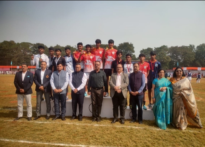 दिल्ली पब्लिक स्कूल, भिलाई का 41वाँ वार्षिक खेल-दिवस समारोह विद्यालय के जूनियर विंग मरोदा सेक्टर में भारी उत्साह के साथ मनाया गया। इस विशेष अवसर पर कार्यक्रम के मुख्य अतिथि दुर्ग संभाग के आईजी राम गोपाल गर्ग थे। इस अवसर पर अन्य विशिष्ट अतिथियों के रूप में पवन कुमार, एमईएस. भिलाई के अध्यक्ष एवं भिलाई इस्पात संयंत्र के कार्यपालक निदेशक मानव संसाधन, श्रीमती आशा रानी, प्रवीण निगम, ई.डी. ईसी बीएसपी, श्रीमती छवि निगम, तुषार कांत,वाइस चेयरमैन, एस.एम.सी., डी.पी.एस. भिलाई – सी.जी.एम., भिलाई स्टील प्लांट, अमूल्य प्रियदर्शी, सदस्य, एस.एम.सी., डी.पी.एस. भिलाई जी.एम एल.ए. एवं पी.आर, भिलाई स्टील प्लांट, राजेश सुकुमार टोप्पो, आई.ए.एस., सचिव, जल संसाधन विभाग, छत्तीसगढ़ शासन, श्रीमती मैरी जेनिफा टोप्पो, जितेन्द्र शुक्ला, कमांडेंट, 5वीं बटालियन, जगदलपुर, बस्तर, श्रीमती अवंती गुप्ता डिप्टी कलेक्टर गरियाबंद, श्रीमती प्रज्ञा मेश्राम एडिशनल एस.पी. कमांडेंट, 7वीं बटालियन, देवेंद्र यादव-विधायक, भिलाईनगर, श्रीमती श्रुतिका ताम्रकार यादव, कर्नल निलेश चतुर्वेदी, कमांडिंग ऑफिसर, 37 छ.ग. बटालियन, एन.सी.सी., दुर्ग , श्रीमती अंकिता चतुर्वेदी, श्रीमती अनुरेखा सिंग, उप निदेशक, अभियोजन, श्रीमती रेणु वशिष्ठ एवं पालक शिक्षक समिति के सदस्य, विद्यालय के सभी स्टाफ तथा यहां अध्ययनरत छात्र एवं उनके पालक बड़ी संख्या में उपस्थित थे। इस अवसर पर विद्यालय के प्राचार्य प्रशांत वशिष्ठ ने उपस्थित जन-समुदाय का हार्दिक अभिनंदन करते हुए स्वागत भाषण प्रस्तुत कर मुख्य अतिथि का परिचय दिया। धैर्य, उत्साह एवं खिलाड़ी-भावना से अभिप्रेरित क्रीडा-शिक्षकों द्वारा कराई गई तैयारी, एन.सी.सी. ग्रुप एवं विद्यालय बैंड के माध्यम से इस कार्यक्रम का आगाज़ किया गया | मुख्य अतिथि पुलिस महानिरीक्षक राम गोपाल गर्ग आइ.पी.एस., पुलिस महानिरीक्षक, दुर्ग रेंज, ने ध्वजारोहण कर समारोह का शुभारंभ किया। इसके पश्चात यहां के छात्र-छात्राओं ने सांस्कृतिक कार्यक्रमों के साथ ही कई विधाओं में अलग अलग प्रकार की प्रस्तुति देकर सबके मन को मोह लिया। इस दौरान कई प्रकार के खेल प्रतियोगिताओं का आयोजन किया गया जिसमें आठवीं एवं नवमी कक्षा की छात्राओं के लिए 100 मीटर स्प्रिंग दौड़ ,दसवीं, ग्यारहवी एवं बारहवी के छात्रों के लिए 400 मीटर रिले दौड़ एवंआठवीं-नवमीं के विद्यार्थियो के लिए भी 400 मीटर रिले दौड़ आयोजित की गई। स्पर्धाओं के पश्चात् पुरस्कार वितरण समारोह हुआ |जिनमें विविध प्रतिस्पर्धाओं में स्थान अर्जित करने वाले छात्र-छात्राओं को कार्यक्रम के मुख्य अतिथि आईजी रामगोपाल गर्ग, ईडी पवन कुमार, आईपीएस जितेन्द्र शुक्ला सहित सभी अतिथियों ने पुरस्कृत किया। कक्षा 10 ‘डी के अक्षांक दर्ड