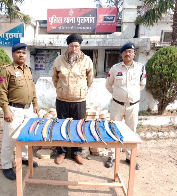 दुर्ग जिले मे प्रतिबंधित अवैध हथियार रखने वालों के खिलाफ चालाये जा रहे अभियान के तहत थाना पुलगांव मे मुखबीर से सूचना प्राप्त हुआ कि “शिवनाथ नदी गुरुद्वारा” के पास पुलगांव में एक व्यक्ति अपने पास तलवार रखा है, की सूचना पर थाना पुलगांव मे उपस्थित स्टाफ द्वारा त्वरित कार्यवाही करते हुए घटना स्थल पर पहुंचे जहां एक व्यक्ति द्वारा तलवार का अवैध रूप से बिक्री करना पाया गया l रवाना हुए स्टाफ द्वारा आरोपी की घेराबंदी कर पकड़ा गया और पूछताछ करने पर उसके द्वारा अपना नाम निर्मल सिंह बताया व आरोपी का विधिवत समक्ष गवाह तलाशी ली गई जिसके “कब्जे से 6 नग लोहे का तलवार जप्त किया गया” l