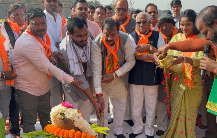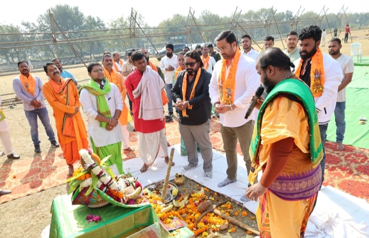 अयोध्या से पधारे स्वामी डॉ. अनंताचार्य जी महाराज ने कराया वैदिक भूमि पूजन, 50,000 श्रद्धालुओं हेतु विराट पंडाल निर्माण कार्य प्रारंभ