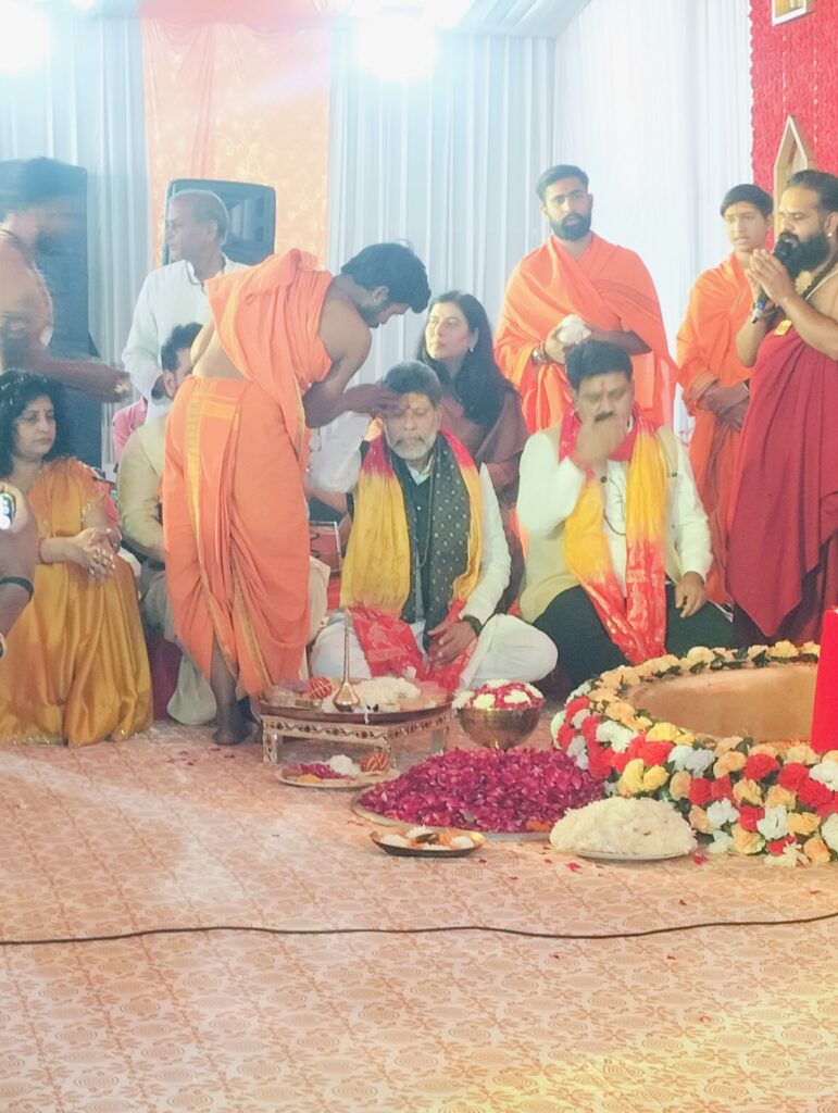 पहले किरण देव सिंह ( भाजपा प्रदेश अध्यक्ष)एवं विजय शर्मा ( डिप्टी सीएम एवं गृहमंत्री)के साथ राकेश पाण्डेय( आयोजक एवं संयोजक), चारुलता पाण्डेय ( समाजसेवी ), सरोज पाण्डेय ( राष्ट्रीय उपाध्यक्ष भाजपा) एवं परिवार ने हनुमान जी का पूजन किया. इसके उपरांत ध्वज का पूजन हुआ. गाजे बाजे के साथ कान्हा महाराज एवं ब्राम्हणों द्वारा किरण देव सिंह, विजय शर्मा एवं राकेश पाण्डेय ने ध्वजारोहण किया. इसके साथ ही जयंती स्टेडियम के समीप ” दिव्य हनुमंत कथा ” का विधिवत कार्यक्रम का आरम्भ हो गया है.