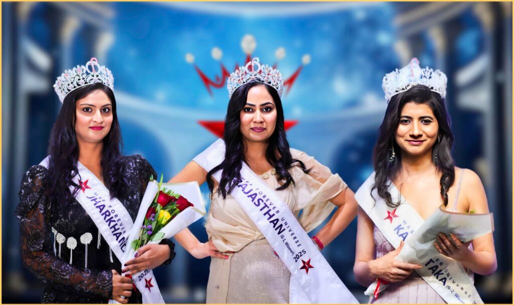जयपुर / देशभर से आए कन्टेस्टेन्ट ने जब शानदार परिधान पहनकर अलग-अलग थीम पर कैटवॉक की तो जी स्टूडियो में शाम फैशन के रंगो से सराबोर हो उठी। फॉरएवर स्टार इंडिया द्वारा आयोजित मिस यूनिवर्स, मिस इंडिया और मिस टीन फॉरएवर यूनिवर्स इंडिया ग्रैन्ड फिनाले सीजन 5 में विशाखापटनम की डॉ. सृजना देवी ने मिस फॉरएवर यूनिवर्स इंडिया का ताज जीता तथा मुम्बई की सारथा समीर गोरे ने मिस फॉरएवर यूनिवर्स का टाइटल अपने नाम किया। जी 1 कैटेगिरी में अंजलि सिन्हा और जी 2 कैटेगिरी में भूमिका सोनगरा ने फॉरएवर मिसेज इंडिया 2025 की जीत का ताज पहना। फॉरएवर स्टार इंडिया के संस्थापक राजेश अग्रवाल और डायरेक्टर जया चौहान ने बताया की मिस फॉरएवर यूनिवर्स और मिस फॉरएवर यूनिवर्स इंडिया के टाइटल के अलावा भारत के अलग-अलग राज्यों के विजेताओं को भी फॉरएवर यूनिवर्स और फॉरएवर इंडिया के टाइटल प्रदान किए गए। ग्रैन्ड फिनाले के विजेताओं में उम्र के लिहाज से मिसेज, मिस और टीन कैटेगिरी बनाई गयी थी और उसी के अनुसार विजेताओं को टाइटल दिए गए। मिस फॉरएवर यूनिवर्स स्टेट विजेताओं में तियासा मंडल (पश्चिम बंगाल) काजल बैरक (अण्डमान एन्ड निकोबार) गायत्री (पंजाब) समीक्षा रंजन (बिहार) अवनीत कौर (राजस्थान) ससि रेखा (आंध्र प्रदेश) अमृता नुनाबोनिया (तेलंगाना) अमिथा एना साबू (केरला) ओर श्रुति अय्यर (महाराष्ट्र) ने ताज जीते। फॉरएवर मिस स्टेट टाइटल में पूनम मेहरा (झारखण्ड) शिनेखा (तमिलनाडु) ओर वैभवी राय (उत्तर प्रदेश) ने जीत हासिल की। फॉरएवर मिस सिटी 2025 विजेताओं में शिल्पा भगानिया (पठानकोट) कुयाशा मुखर्जी (दुर्गापुर) सिमरन सहोता (अमृतसर) मुस्कान इन्दौरा (पंचकूला) और मानसी राना (नार्थ ईस्ट दिल्ली) के नाम शामिल रहे। फॉरएवर मिस टीन सिटी विजेताओं में सुप्रिया चौबे (गोरखपुर) और आकांशा कदम (बुलढाणा) ने बाजी मारी तथा महिमा मिश्रा ने मिस फॉरएवर यूनिवर्स लखनऊ का टाइटल जीता। जी 2 कैटेगिरी में फॉरएवर मिसेज स्टेट विजेताओं में नीतू बगारे (उत्तराखंड) चन्द्रलेखा (तेलंगाना) शिल्पा गाडरे (कर्नाटका) सुपर्णा साहा (पश्चिम बंगाल) रूनी सिंह (झारखण्ड) और मीनाक्षी (राजस्थान) ने जीत दर्ज की। मिसेज फॉरएवर यूनिवर्स स्टेट जी 1 कैटेगिरी में अंजलि मीणा (राजस्थान) अनुप्रिया लता (झारखण्ड) और अंजलि (कर्नाटक) ने जीत हासिल की। फॉरएवर मिस टीन स्टेट 2025 विजेताओं में अंशी वेदक (महाराष्ट्र) ऐश्वर्या (कर्नाटक) प्रसंशा पाणिग्रही (ओडीशा) परिताला दिव्या (आन्ध्र प्रदेश) जयानी मैत्रेयि (गुजरात) ग्रेस प्रोगान्या बिस्वास (पश्चिम बंगाल) प्रीति यादव (तेलंगाना) और एना एलिजाबेथ (केरला) ने जगह पक्की की। गीतांजलि ने फॉरएवर मिस टीन चंडीगढ़ 2025 का खिताब जीता। मिस टीन फॉरएवर यूनिवर्स स्टेट विजेताओं में काव्या ब
