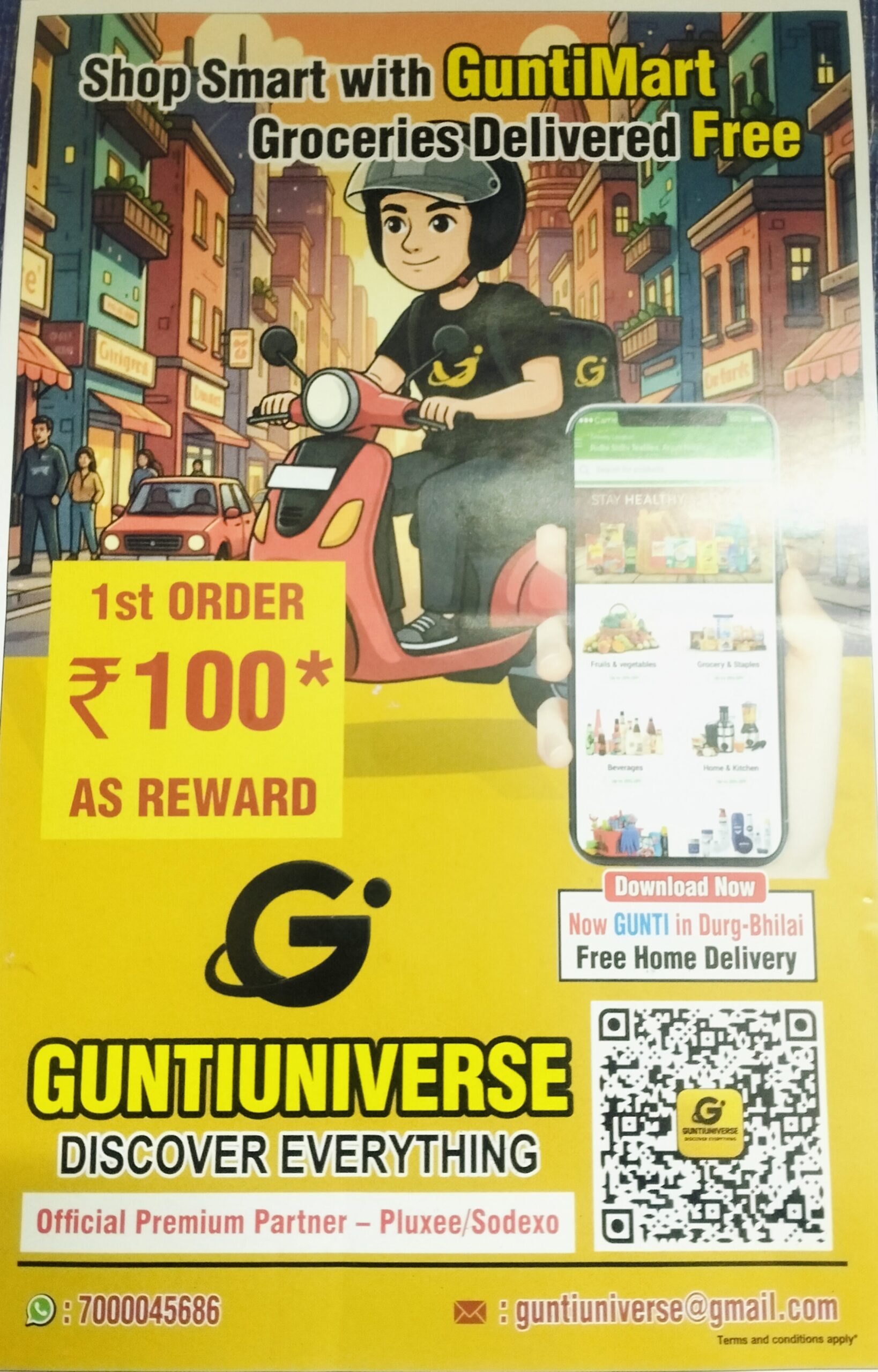 इस नव वर्ष में मकर संक्रांति पर्व पर “इस संक्रांति खुशियां भी.. बचत भी” गुंटीयूनिवर्स आपके लिए लाए हैं सुपर सेल 4 जनवरी से 15 जनवरी 2026 तक किराना  और दैनिक उपभोग की वस्तुओं की कीमतों पर विशेष छूट दी जा रही है. दुर्गा और भिलाई के उपभोक्ता इसका लाभ अवश्य लेवे.