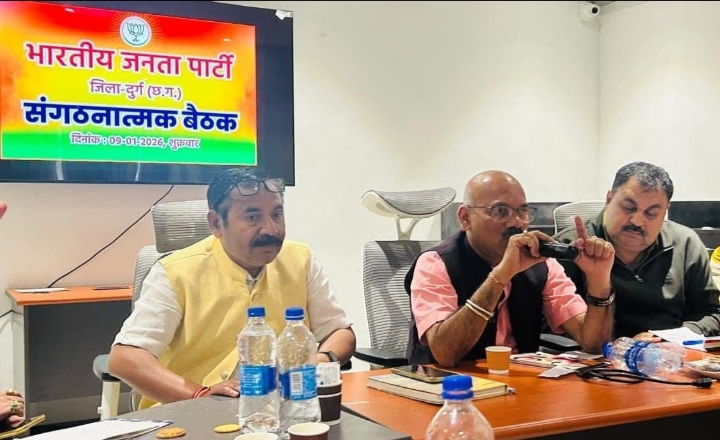 भारतीय जनता पार्टी दुर्ग जिले की जिला स्तरीय संगठनात्मक बैठक दुर्ग रिवेरा रिसोर्ट में जिला भाजपा अध्यक्ष सुरेंद्र कौशिक की अध्यक्षता में संपन्न हुई आयोजित बैठक में मुख्य रूप से जिला भाजपा अध्यक्ष सुरेंद्र कौशिक उनके साथ जिला महामंत्री दृय दिलीप साहू, विनोद अरोड़ा उपस्थित रहे आयोजित बैठक में विगत वर्ष संपन्न हुए कार्यों के समीक्षा एवं आगामी दिनों में संगठनात्मक कार्यों के संपादन को लेकर रूपरेखा का निर्माण एवं अनुशासनात्मक ढंग से संगठन के नवीन पदधारियों को संगठन के कार्य प्रणाली से वाकिफ कराने का आह्वान किया गया |बैठक में उपस्थित भारतीय जनता पार्टी के पदाधिकारीयों ने संपन्न 1 साल की उपलब्धि भारी कार्यकाल उन्हें अपनी बधाई एवं शुभकामनाएं प्रदान की|