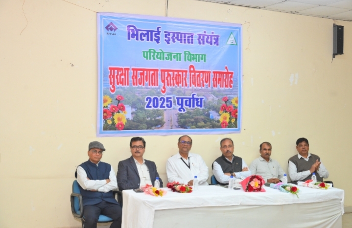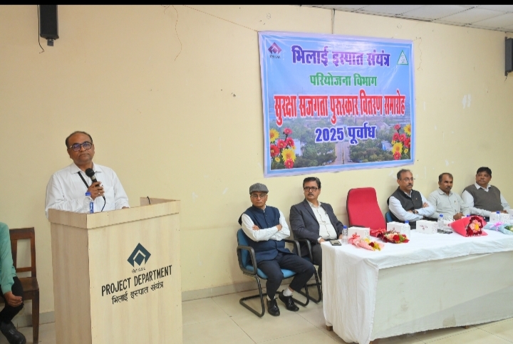सेल-भिलाई इस्पात संयंत्र के परियोजना विभाग द्वारा दिनांक 17 जनवरी 2026 को “सुरक्षा सजगता प्रोत्साहन पुरस्कार वितरण समारोह” का आयोजन कार्यपालक निदेशक (परियोजनाएं) श्री प्रबीर कुमार सरकार के मुख्य आतिथ्य में किया गया। इस कार्यक्रम का मुख्य उद्देश्य परियोजनाओं में कार्यरत ठेका श्रमिकों के मध्य सुरक्षा के प्रति जागरूकता को बढ़ावा देना तथा उत्कृष्ट एवं अनुकरणीय सुरक्षा व्यवहार को प्रोत्साहित करना था।